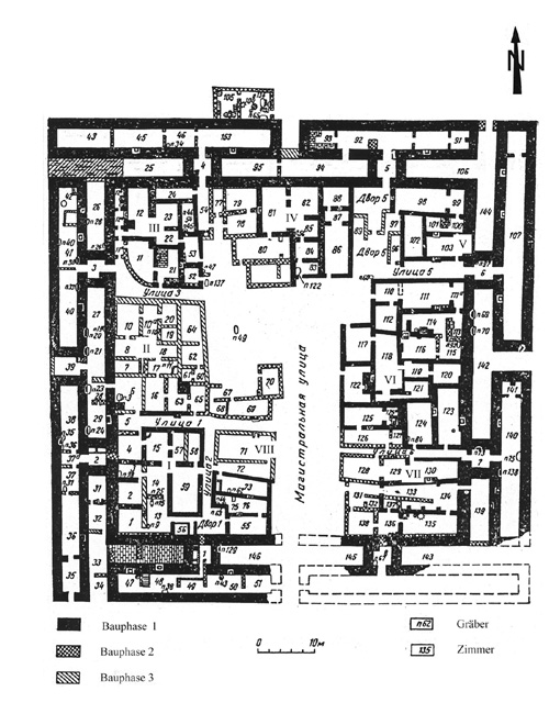 phase of the Late Bronze Age, the 20th/19th centuries B.C. (LB Ia). In the settlement the remains of residential architecture were found, and dug into these altogether 138 burials. | ||||
